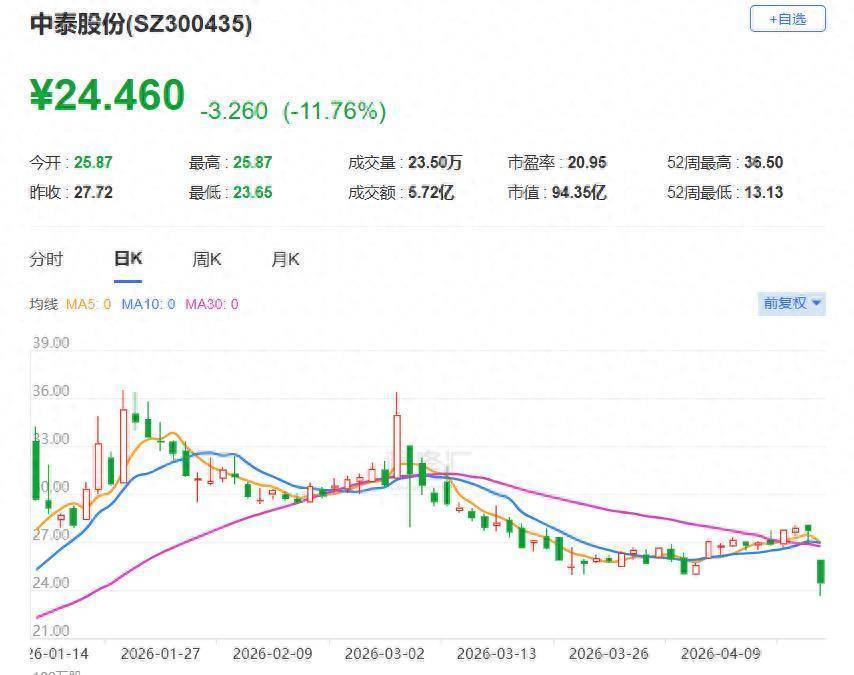 中泰股份(300435.SZ)大幅着落近12%,午间收报24.46元,市值跌破百亿元大关。音信上,中泰股份2026年一季度归母净利润为4254.76万元,同比大幅下降57.55%。具体来看,公司一季度已毕贸易收入5.65亿元,同比下降21.33%;扣非净利润为3355.71万元,同比下降64.87%;基本每股收益降至0.11元。事迹下滑最平直的弘扬是利润近乎腰斩。凭据公司公告在线股票杠杆开户 - 新手炒股配资如何注册,这次净利润骤降并非洽商恶化,而是由收入阐述的期间错位导致。